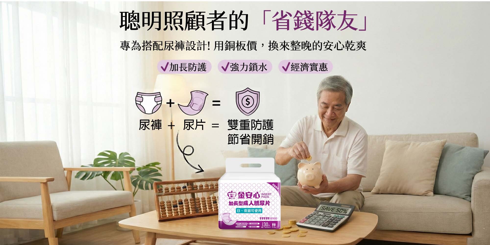 不僅大幅降低耗材成本,更能減少幫長輩更換整件尿褲的時間。