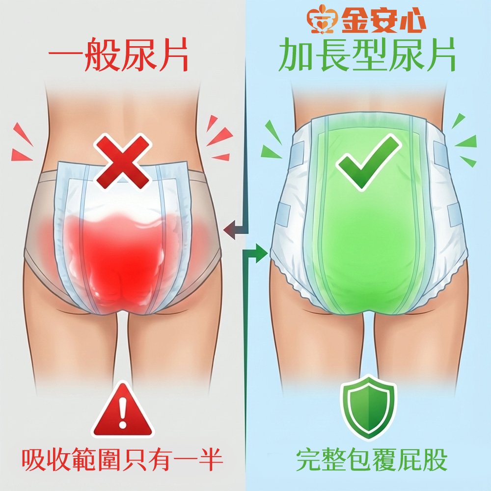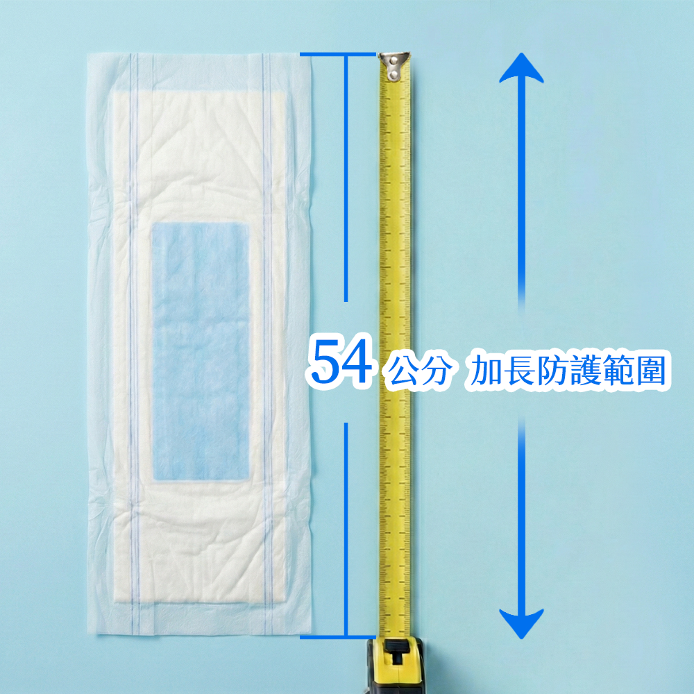 54公分的特殊規格,比一般標準版更長!加長設計能完整包覆臀部曲線,即使長輩長時間躺臥,也能有效阻擋尿液向後流動。*