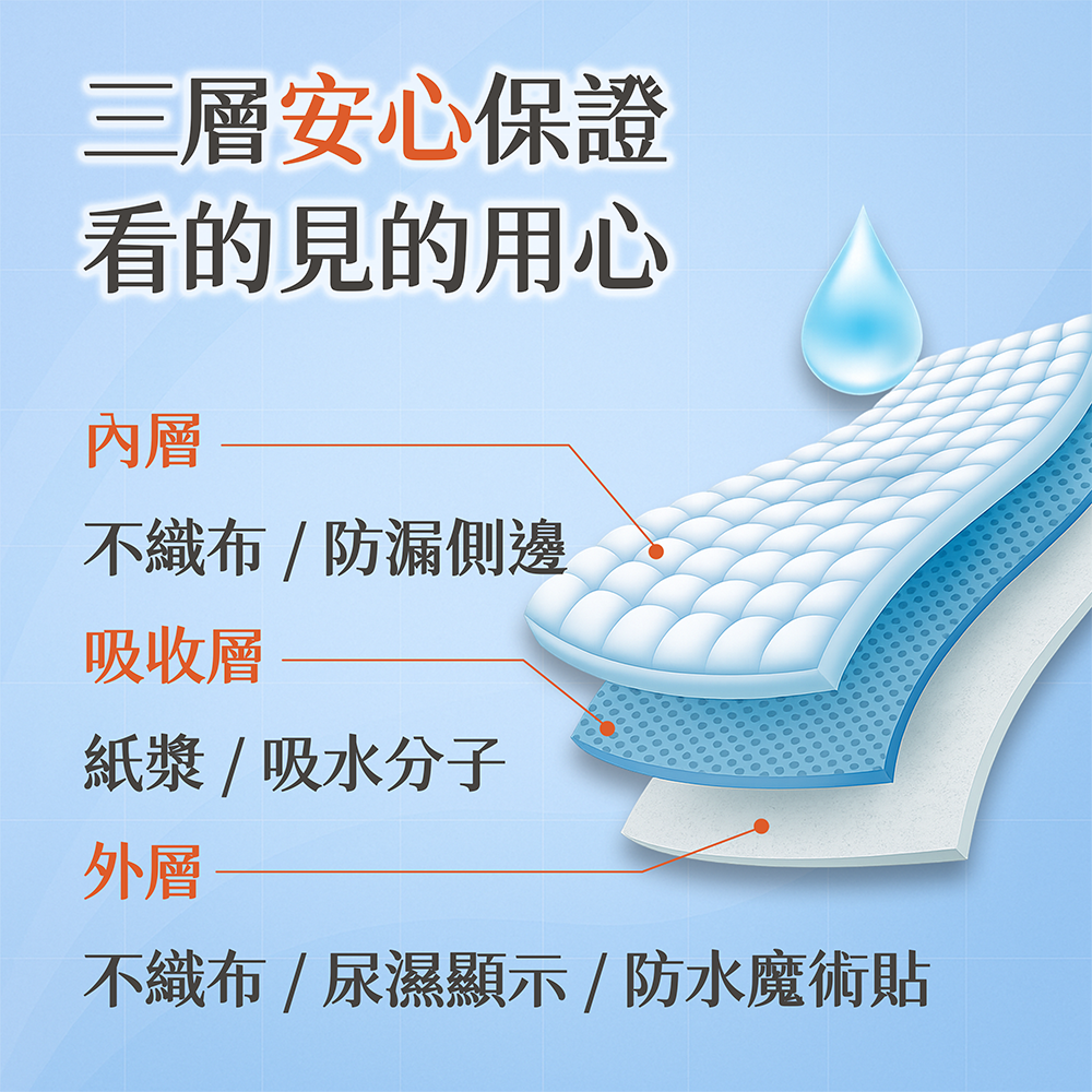 • 乾爽透氣膜,不用擔心潮濕流汗